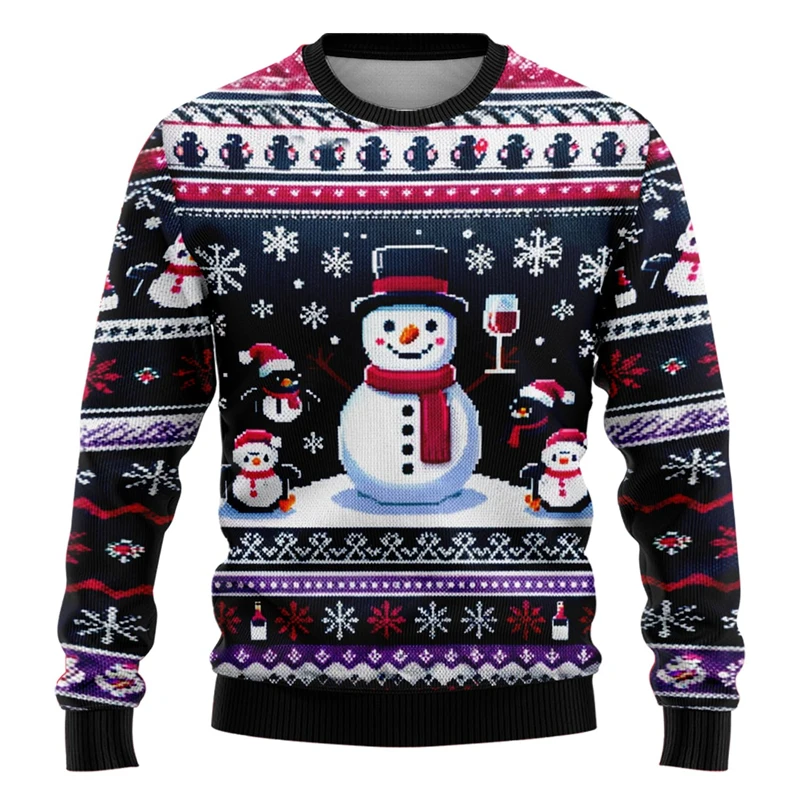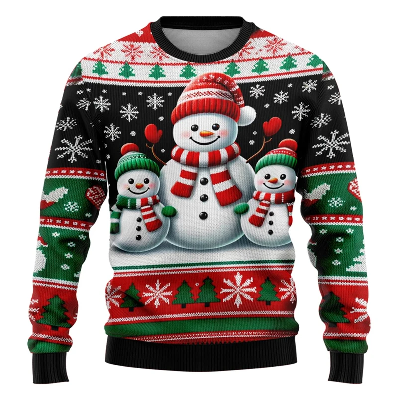 Unisex 3D Christmas Sweatshirt, Santa and Snowman Printed Ugly Holiday Pullover