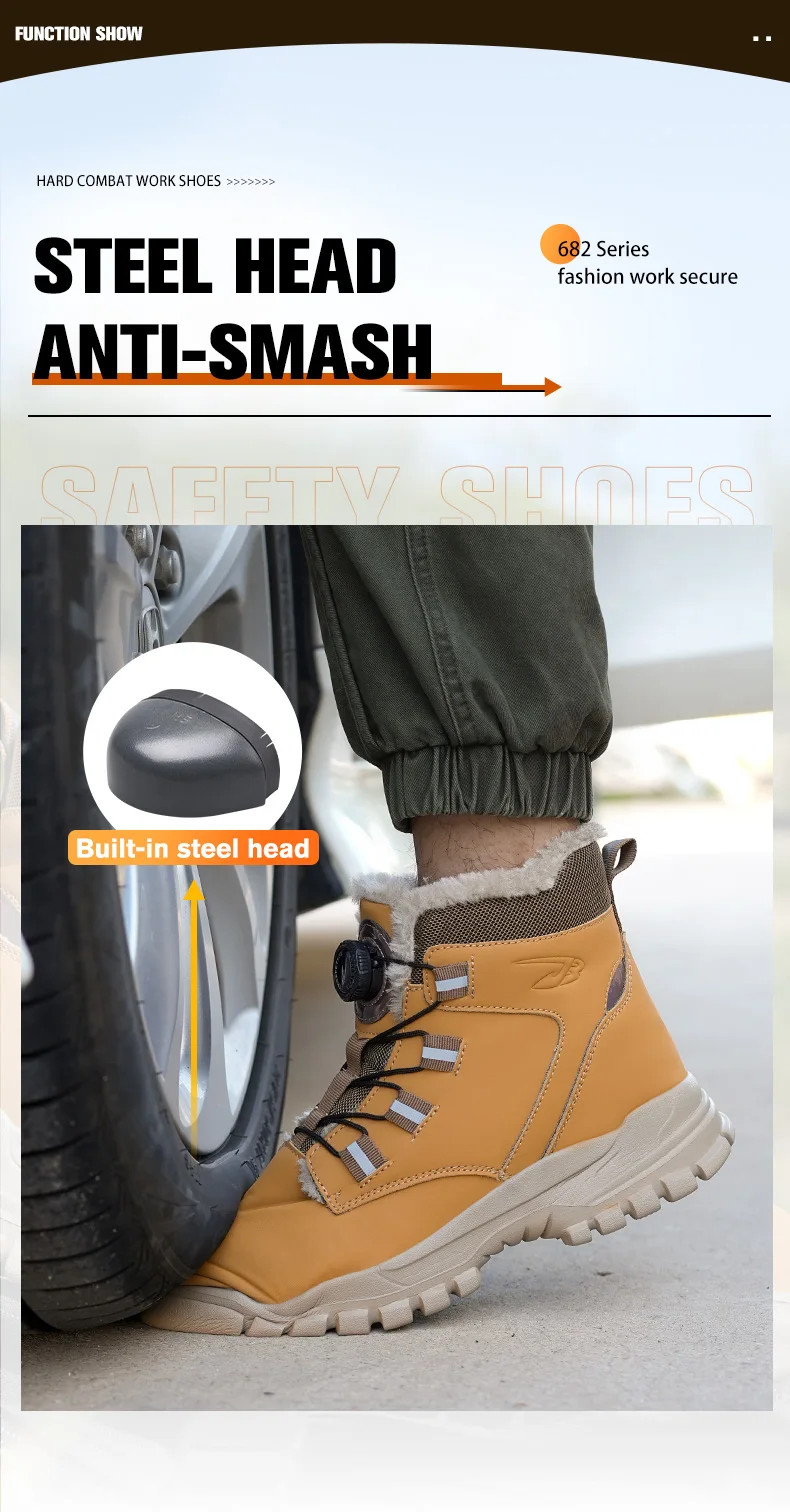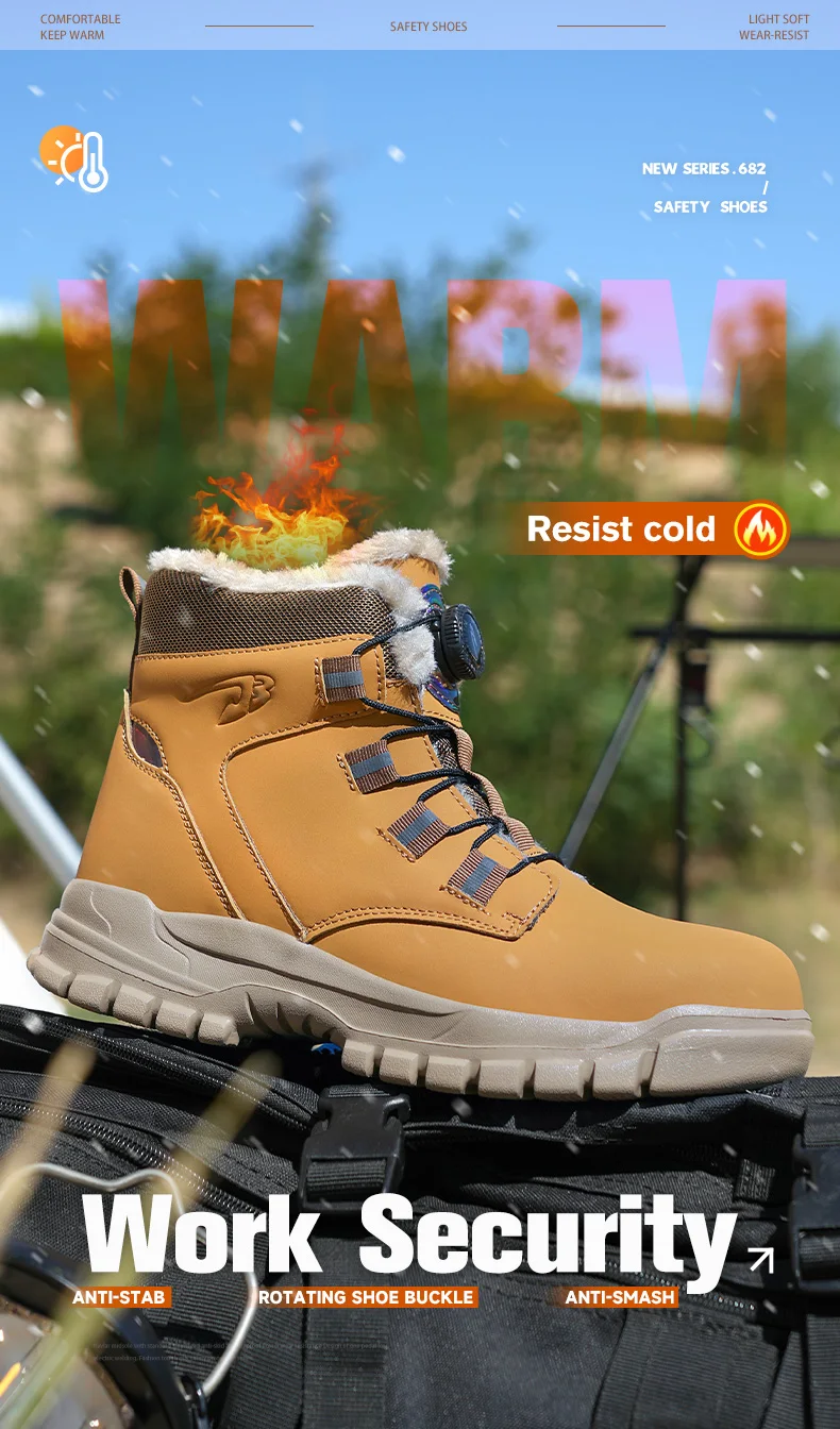 2024 Men’s Waterproof Steel Toe Work Boots Winter Safety Shoes Durable Ankle Labor Footwear