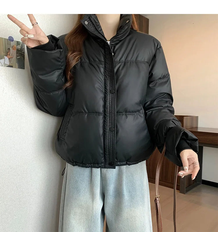 Women’s Short Winter Puffer Jacket, Stand Collar Parka Coat with Zipper