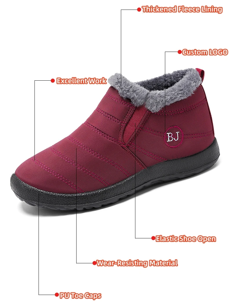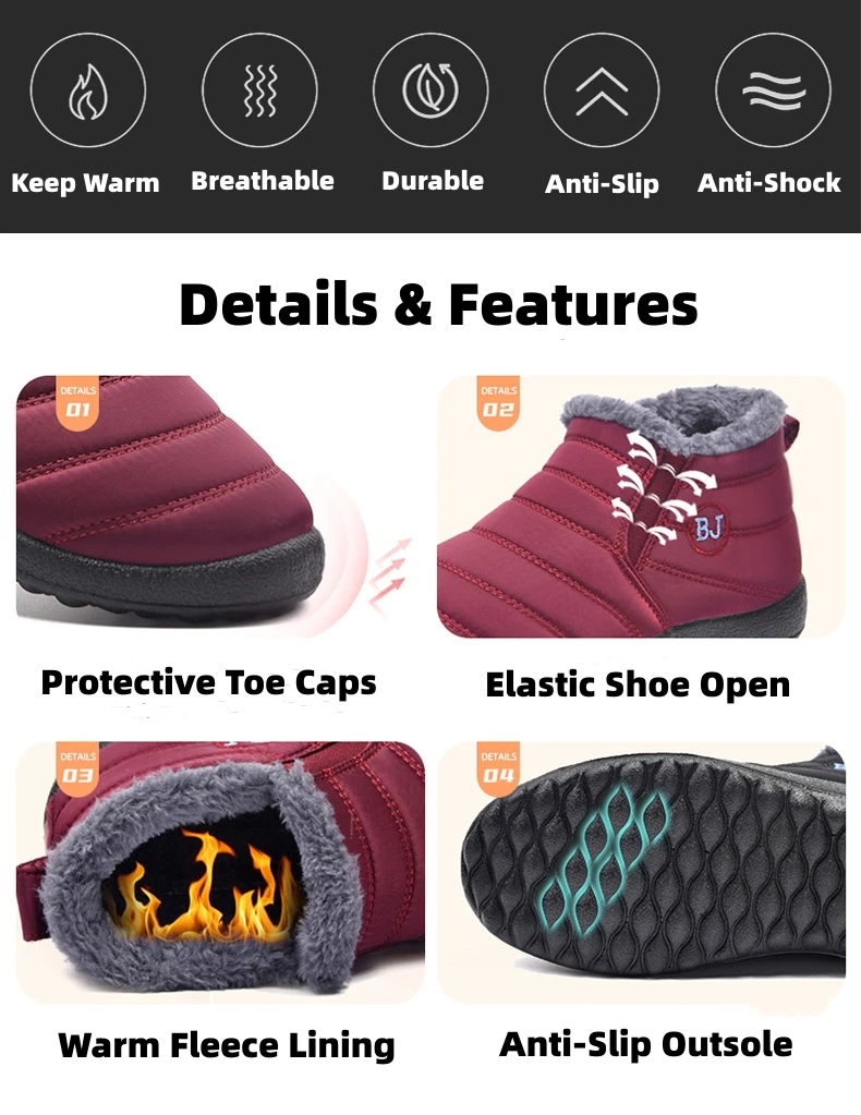 Waterproof Winter Snow Boots Unisex Plush Ankle Shoes Warm Platform Cotton Footwear