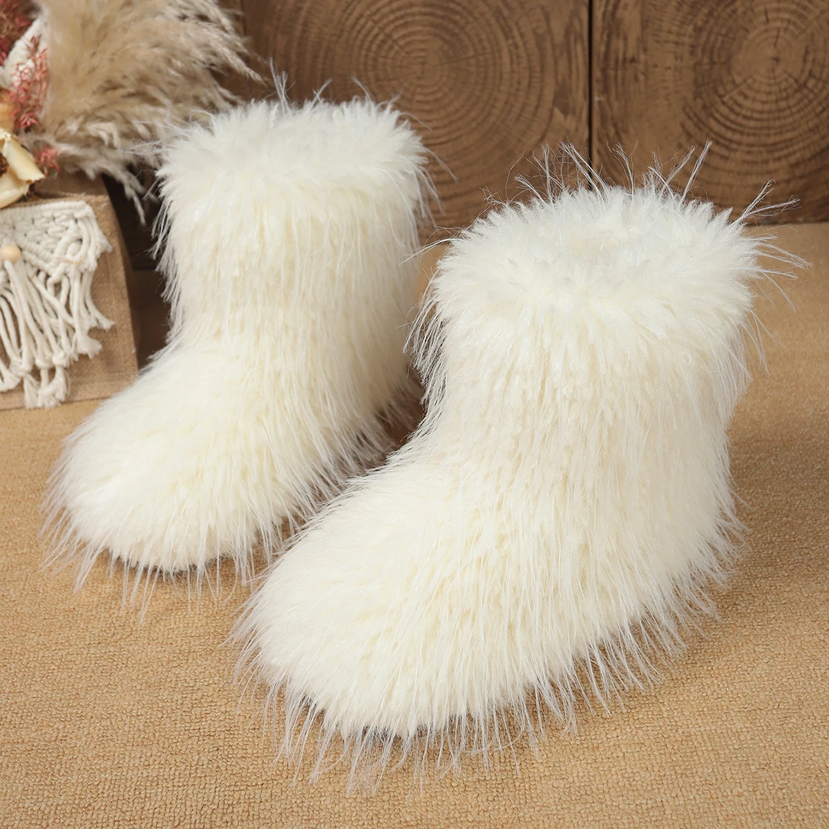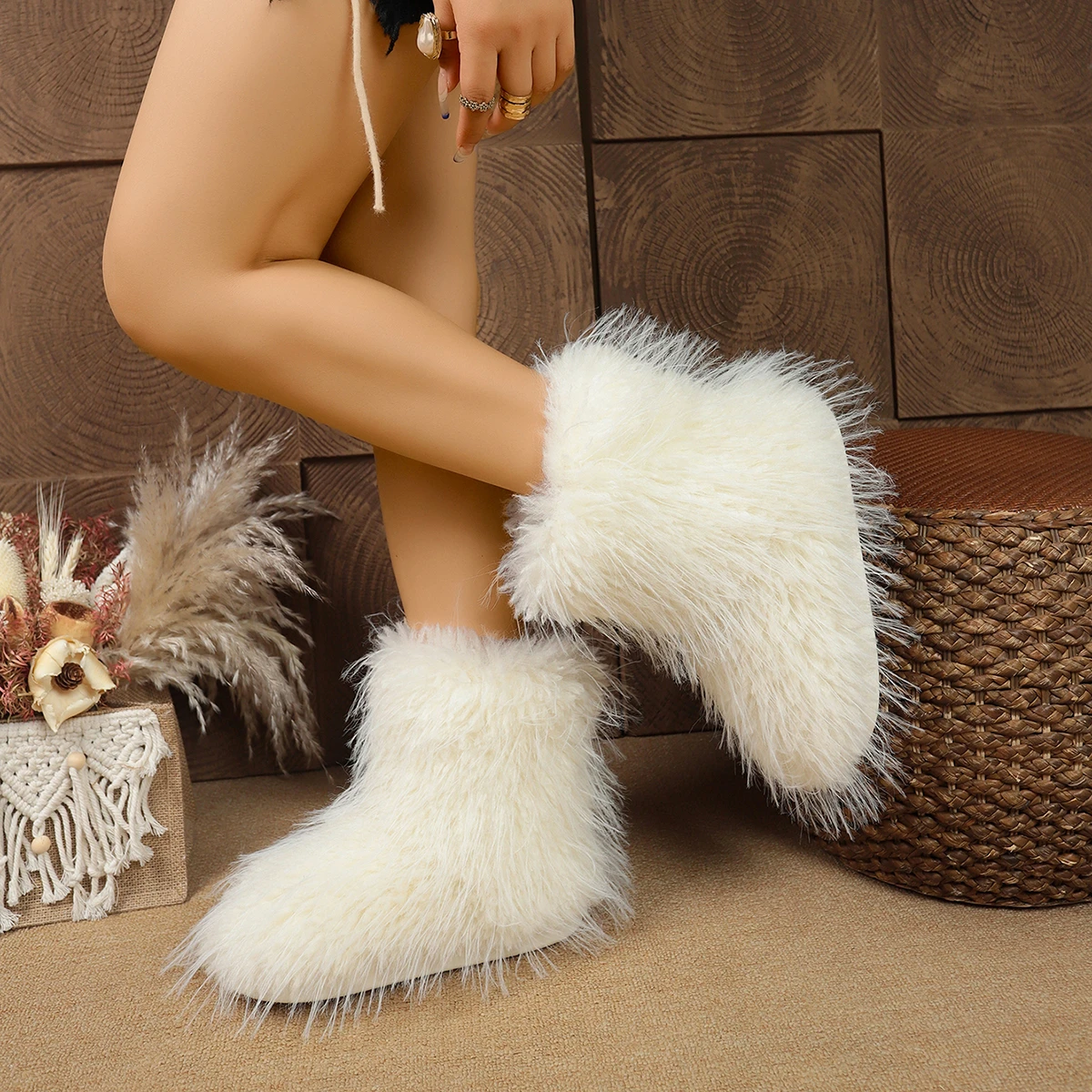 Women’s Winter Mid-Calf Snow Boots, Warm Fleece-Lined Faux Wool Cold-Proof Shoes