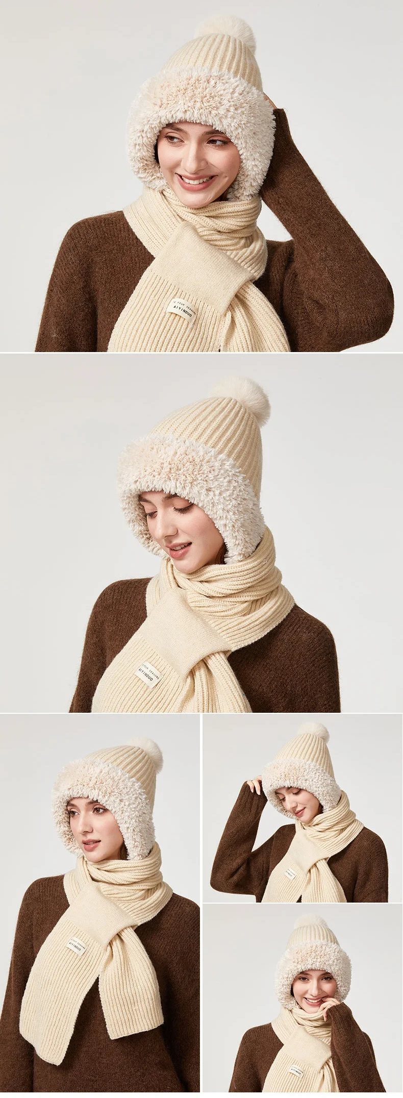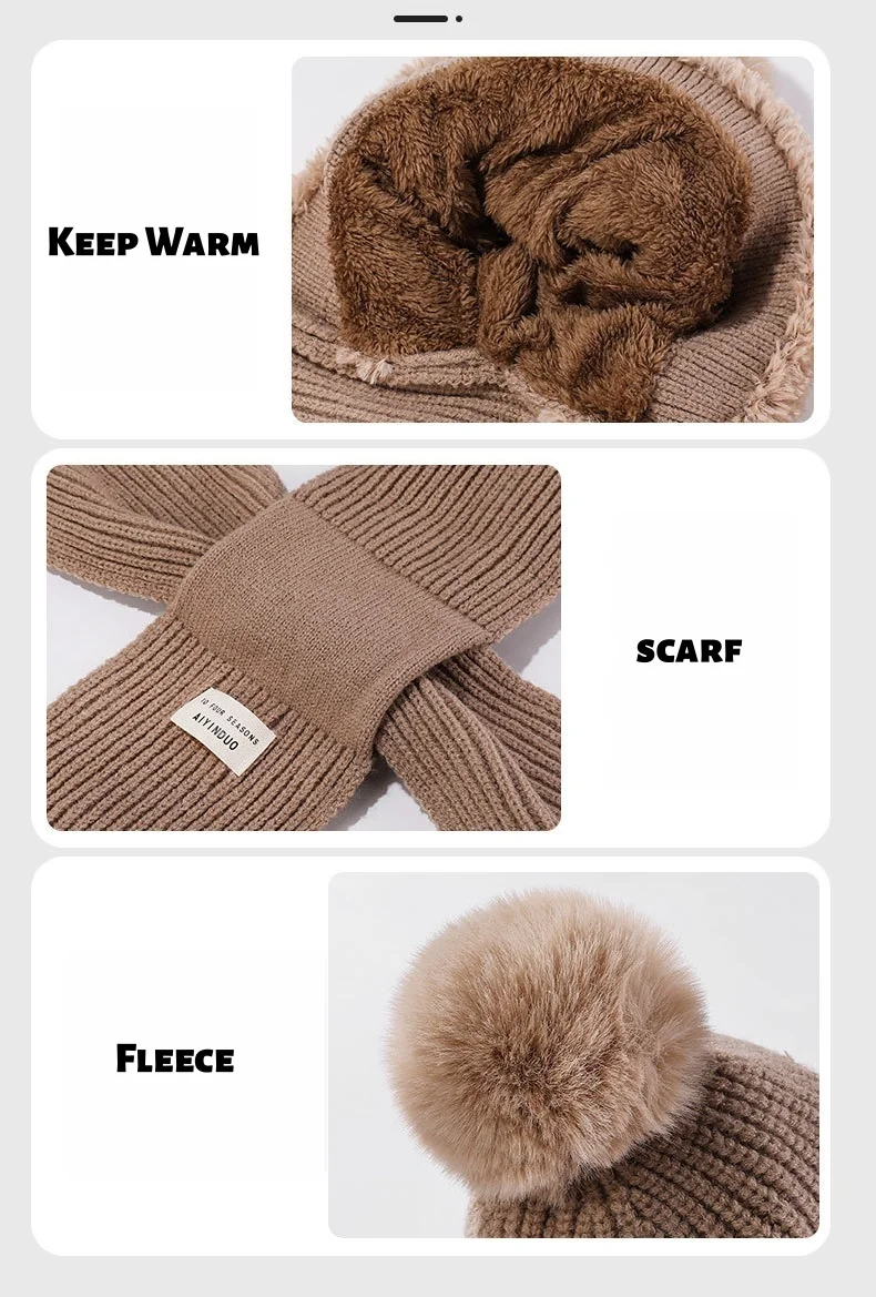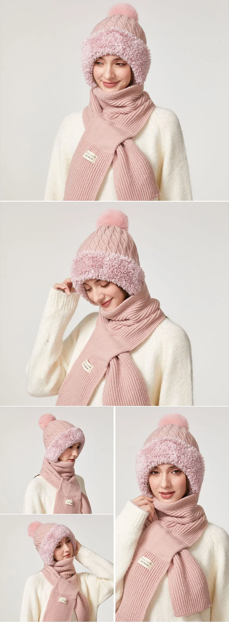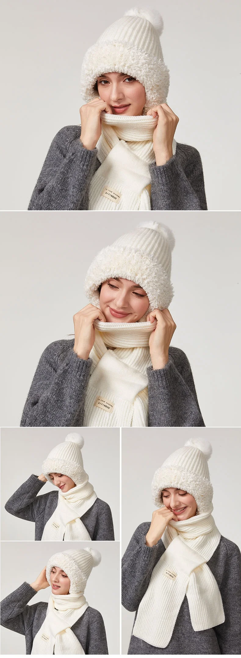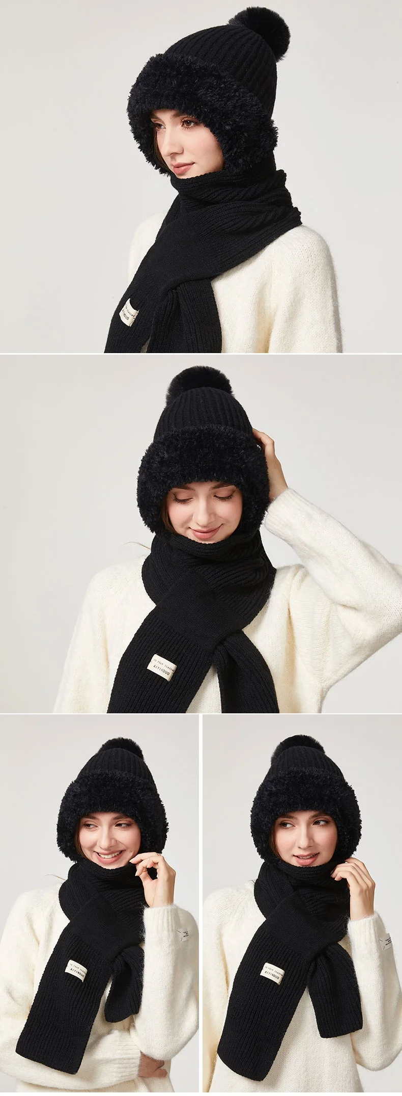 Women’s Winter Hat with Long Scarf – Fleece-Lined Warmth
