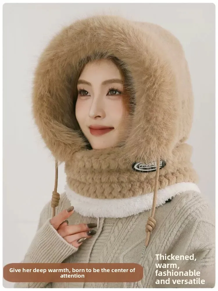 Women’s Winter Plush Hat with Hood, Scarf & Ear Protection